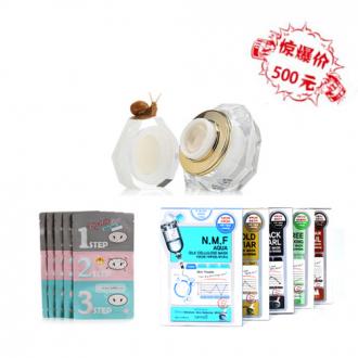 蜗牛霜+N.M.F水库面膜+猪鼻贴(5张) + ¥0.00